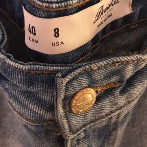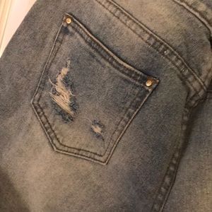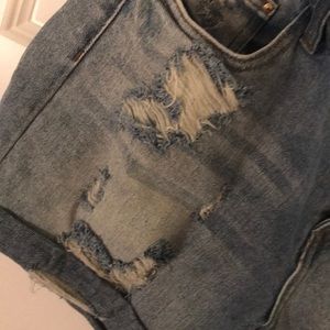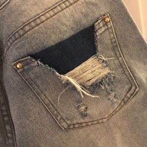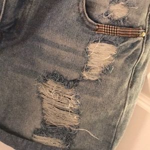 NWOT. Washed but never worn. Primark, Atmosphere or denim co brand. Size 8 USA midi rolled shorts. Light wash, super destruct. Tears, patches and fabric stitches add in multiple places. In mint condition, super trendy, just way too big on me now.