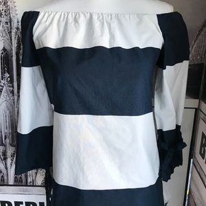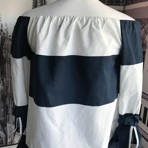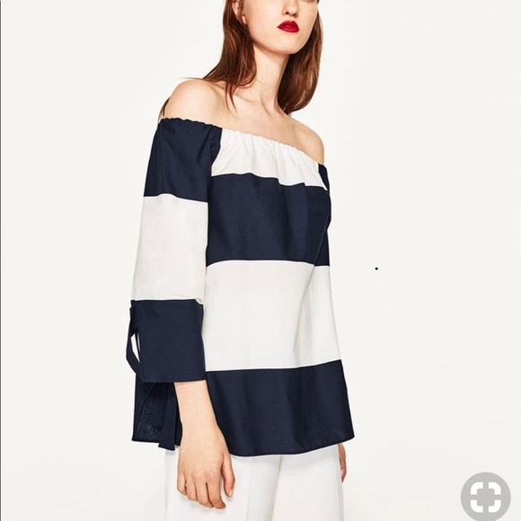 Zara Basic Blouse Blue and White Over the shoulder. Size Medium in very good condition.