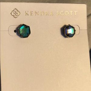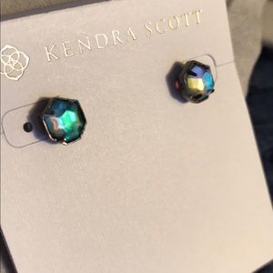 Great small stud earrings by Kendra Scott. Stones are fantastic and so sparkly. Flashes of pink, blue, green make these stones really shine in the gunmetal setting.