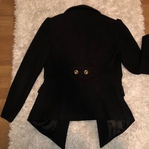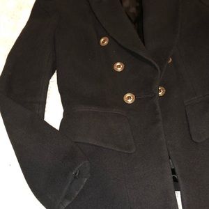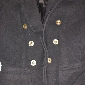 Adorable blazer/coat with gold buttons. This jacket doesn’t stretch at all FYI