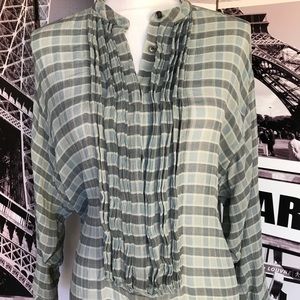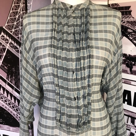 Burberry Womens Size Medium Blue Plaid 100% Silk Popover Tunic Top Pleated Long Sleeve. In good condition just a very small snag is not noticeable. Please see pictures