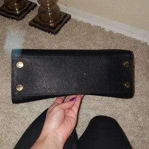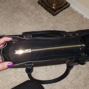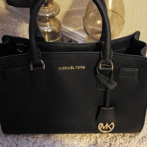 Well taken care of. Normal wear, some minor stains inside one small stain on the bottom of th purse smaller than a dime. Cant find the long strap. Handels are long enough to fit snug on my shoulder.