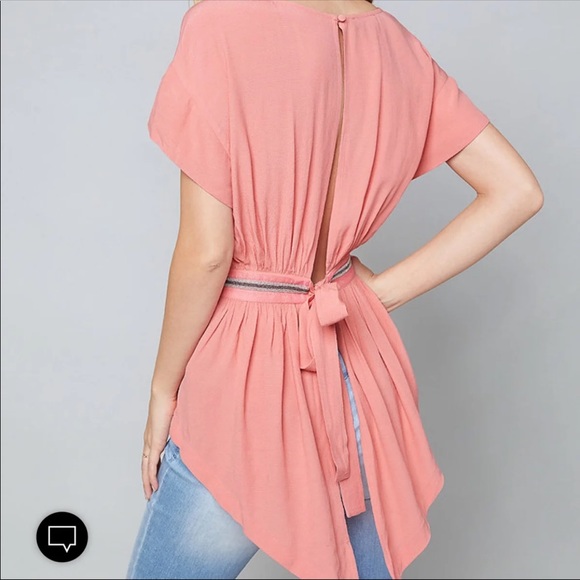 Wine-bar top in a chic pebbly crepe. Peplum design with back tailcoat-style finishes that add provocative flutter. Skin-flashing open back fastens at neck and waist. Gleaming bead detail. Back neck button-loop closure. Back tie waist.
