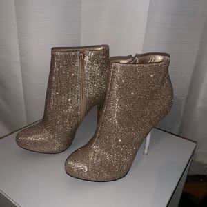 New Charlotte Russe champagne mesh glitter booties in box no lid absolutely gorgeous perfect for holiday parties or even a night out!