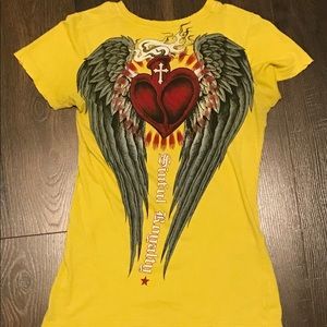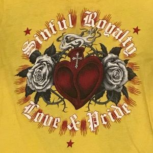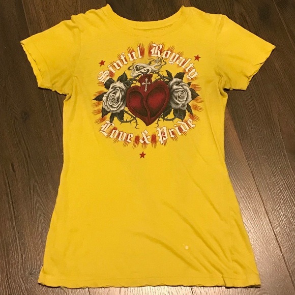 Super Sexy Form Fitting Like New Womens Sinful Tee 💀 Nothing wrong with it, and it comes from a smoke free home. Perfect paired with a pair of holy jeans, or some black jeggings/leggings.