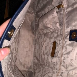 Beautiful Michael Kors in like new condition striped large tote bag in navy and white used once for a couple of hours has plenty of space inside great for travels or everyday use!!!