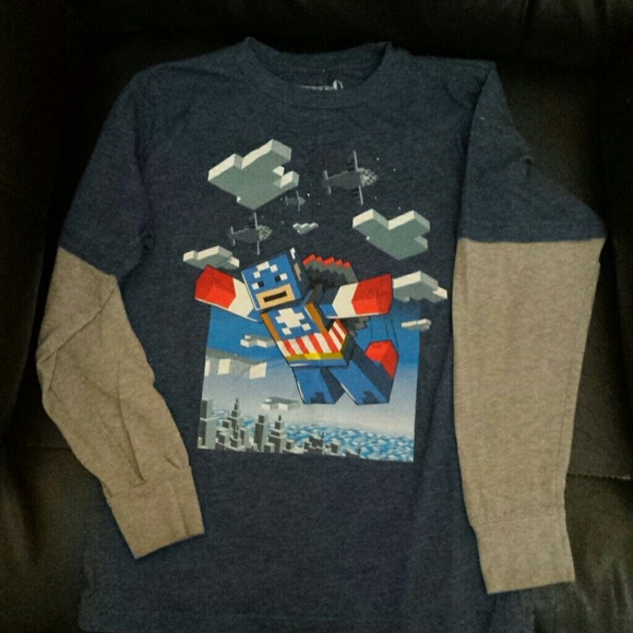 Dark blue with gray sleeves and Captain America Lego Super Hero on front
