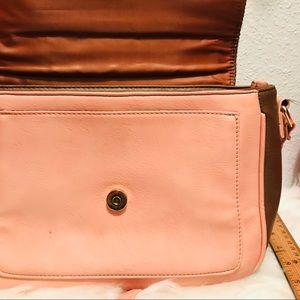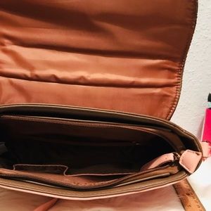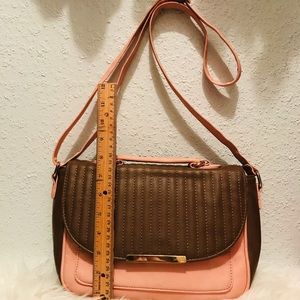 Small details on golden part but nothing major or bad. The leather, interior and exterior are in great shape no wear & tear. Measurements are as shown. The purse could be used as a crossbody purse or even a business bag! It’s very spacious & great color combination!