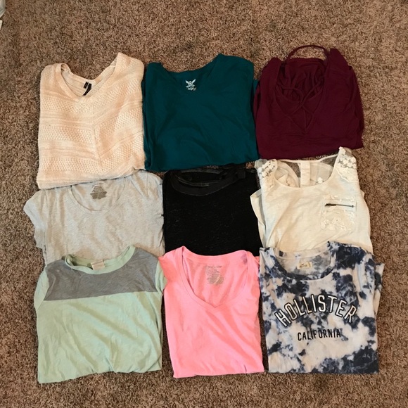 Short sleeve and long sleeve tops size small and medium all fit the same. Gently used some new