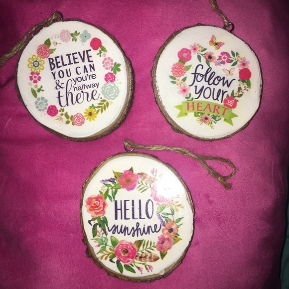 3 wood pieces of floral/girly wall decor with inspiring messages !! Real wood...can be used multiple ways..string can be cut or used to hang up...hand is shown for size and thickness 🌸🌺🌸🌺will not separate