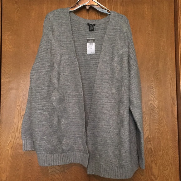 Brand new, never worn! Super warm sweater material with a pretty criss cross design on the front. Large arms to add to the comfy feel. (Also have this cardigan in oatmeal)