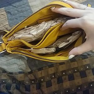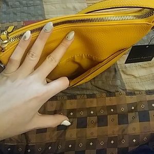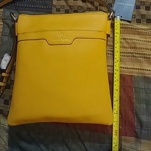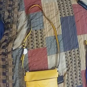 NWT crossbody. I purchased because I love the color. I was gifted another the same color. I didn't have the chance to even take the paper out. Size length 11" and width 10". Long adjustable strap.