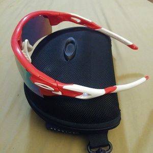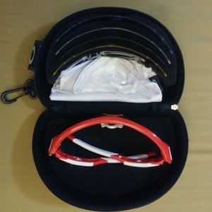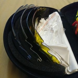 Oakleys only opened and tried on ..(they don't fit my boyfriends head, oops) comes with case, 5 lenses, prescription lense frame, extra nose piece, cleaning/dust bag. Shoot me an offer! ๐