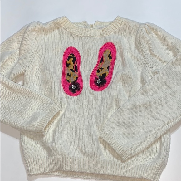 Cutest pink ballet shoe design sweater for girls. Gently used and washed