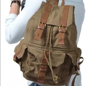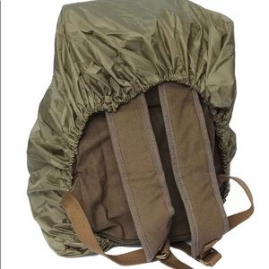 Canvas back pack that is great for day trips, camera equipment, etc. Comes with waterproof rain cover. No damages, rips, tears to bag. Upgraded my camera equipment and needed something with extra room.