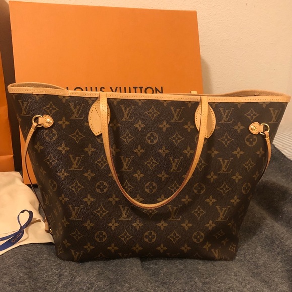 Perfect Condition! Beautiful Louis Vuitton Neverfull Mm NM MNG Beige! Small pen marks on inside. Easily clean-able. Comes with dust bag, copy of receipt, and Neverfull purse! I’ll consider all offers made! Originally $1,428.90 ‼️ Purchased July 21, 2018! Used a handful of times for nice dinners and trips to the opera house here in Houston ♥️⚠️