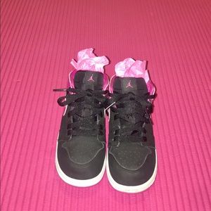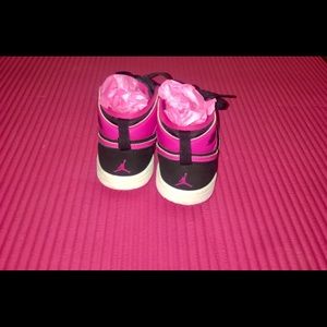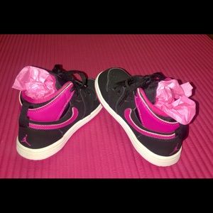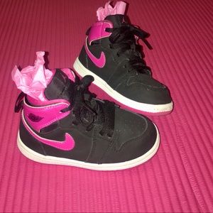These are preowned toddler air Jordan black and pink my daughter only used them like few times no mayor signs of use looks like new size 8c