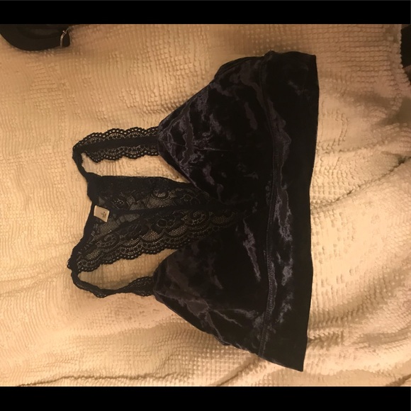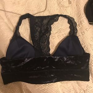 Dark blue lace velvet bralette with removable pads. Very supportive