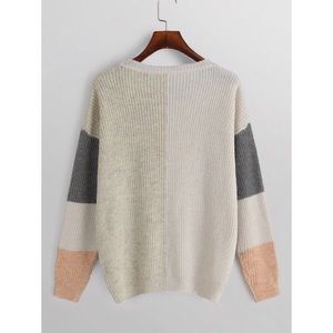 Gorgeous color blocked sleeve sweater with 2 tone torso. I love pairing this sweater with a pair of light colored jeans and tucked in the front 💗