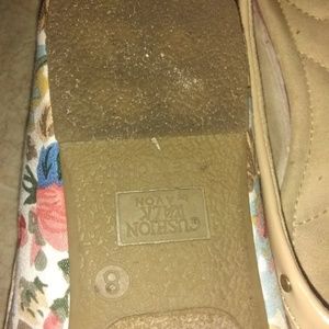 These adorable flats were worn only once. They're comfortable due to the memory foam cushion inside the size 8 shoe.
