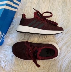 Size 9c, maroon colored. 10/10 condition because my daughter wore them 3x the most. Paid $60+