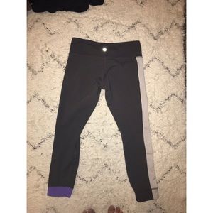 - 5/6 on me grey winder under with white stripe down side and purple around one ankle, very slight piling - size 6