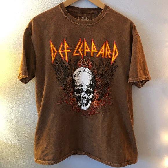 Brown acid washed graphic tee - band tee - def leopard tee. Size - L unisex Tee. Practically new condition - no flaws in fabric or stitching