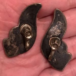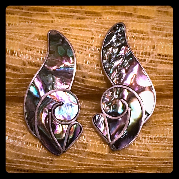 Gorgeous vintage mother of Pearl & sterling silver screw back earrings. These are in excellent vintage and wearable condition. I did not polish because some people like the tarnished look. I can polish before shipping if you buy them. If you have additional questions feel free to ask.