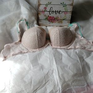 Victoria Secret dream angel cream colored with beautiful iridescent pink lace lightly padded...