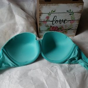 Victoria Secret multi way strapless missing straps beautiful lacy mint green. Both are 32DD and gently worn a few times like new