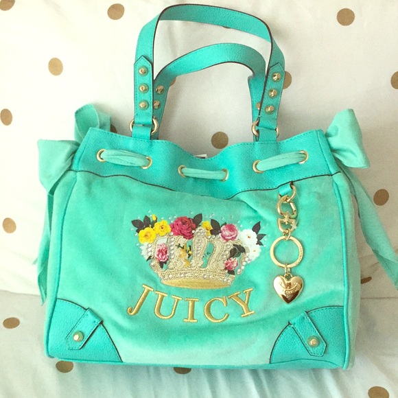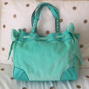 This bag deserves to come off a dark closet shelf, and into the hands of someone to show her off! Gorgeous teal/sea foam green color 😍 I’ve collected Juicy products over the years when the company was still owned by Pam and Gela. This was my first, and last purchase under the brands new ownership.