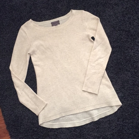 Soft, lightweight cashmere sweater with hi-low hem. Gently worn. Perfect length for leggings and boots. Front length 22”, back length 25.5”, sleeve from shoulder 23”, width at chest 16”.