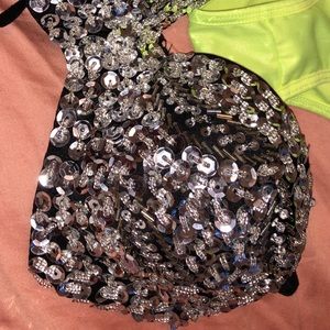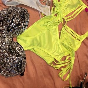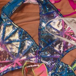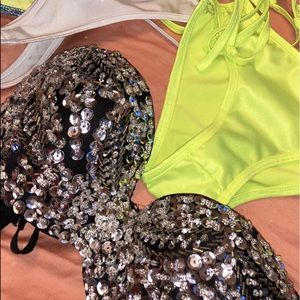 Stripper bundle value of $60!!! Package includes: Glittery bra, 2pc UV neon outfit, white jewels panties, UV color halter top, pink bikini bra. I wore the glittery bra 5x but everything else was worn 1x. Everything is a size S/M!!!