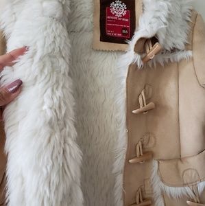 Used only for a big bear trip, no flaws at all. I have had this coat for many years until my daughter was able to fit in it. Very warm and has 2 pockets! Eskimo style!