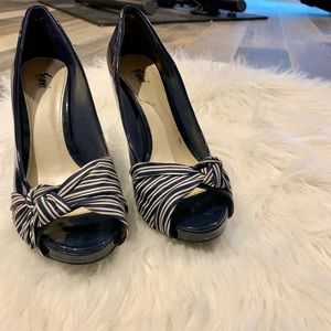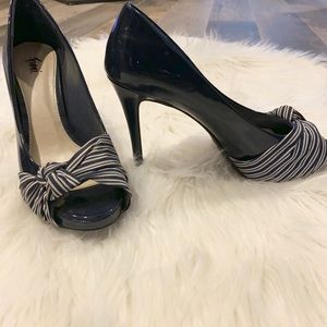 Cute used navy blue pumps, minimal signs of wear. Size 7.5. Heel size 3 1/2 inches. Good condition. Sell as is.