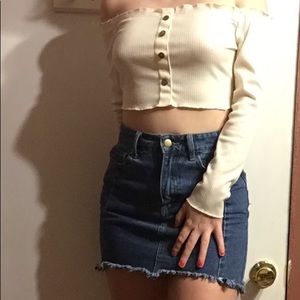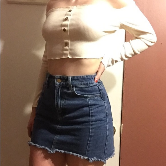 No flaws, from forever 21 size small. It’s too small for me personally. Size 2 I’d say. I took measurements of the waist line and length of skirt to help you to know if it’ll fit or not!