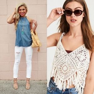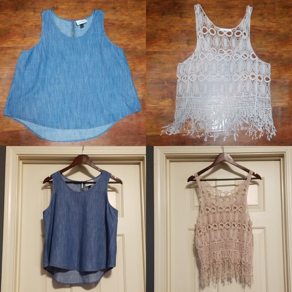 Chambray Tank Top (Denim) & BOHO Crochet Tank Top... both very gently used, perfect for spring/summer festival season.