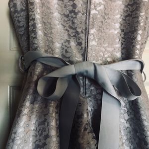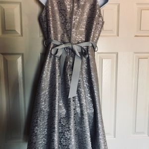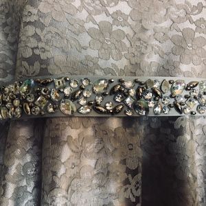Silver Floral Lace Party Dress with Rhinestone detachable belt. About knee length. Excellent Condition. Worn 1x. Dry Clean only. From a Smoke free home.