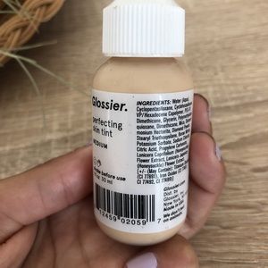 Glossier skin tint in medium worn 2 times not my shade anymore. 3 months old. Dirty from sitting in my makeup bag. Sterilized. Genuine.