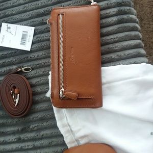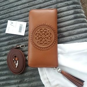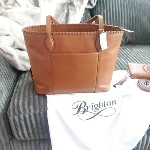 From the Ferrara Collection. Beautiful matching set in luggage pebble grain leather. Purse purchased at outlet store - serial number is blacked out (see pic). Measures 11.5 x 9 x 4.5. Comes with dust bag and all tags. Wallet/crossbody is on Brighton website and retails for $170. Detachable, adjustable strap included. Both are in brand new condition. Great year-round color!