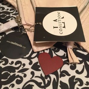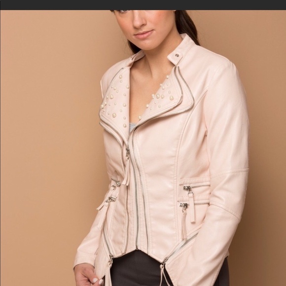 Gorgeous dusty pink moto jacket, vegan leather, pearl lapel