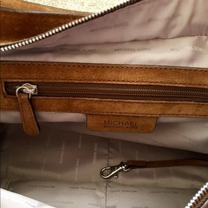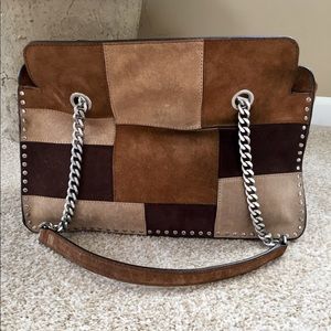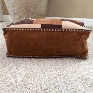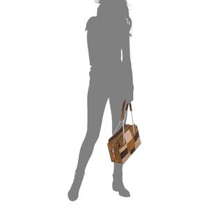 Gently used condition, this is a not so common Michael Kors find! Varying shades of brown, and tan suede patchwork throughout. 3 pockets inside, one of them a zip compartment. Key ring also inside. Beautiful craftsmanship!! No rips or stains, only used a couple times.