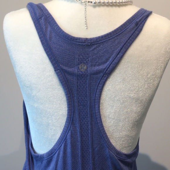 purple lululemon swiftly racerback tank top in purple. size 10. Logo on back
