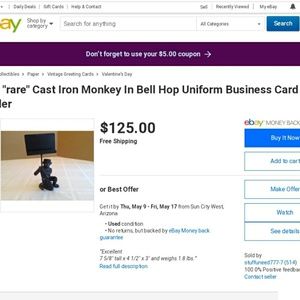 Adorable little monkey card holder vintage heavyweight .
