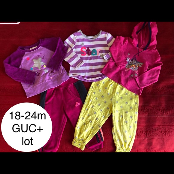 VGUC lot of 3 star shirts and star pants from The Children’s Place + pink Adidas sweatpants.