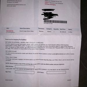 My bf bought me this bag from the RealReal and it’s the wrong style! It’s beautiful like new only wear on it is the tiny bit on handle I posted a pic . Inside is spotless . Gucci Large Soho Hobo . Black ! Bag comes in a RealReal dust bag and a large gift box! On the RealReal this is Authenticity Guaranteed! Looking for the soho chain shoulder bag would trade for that one ;)