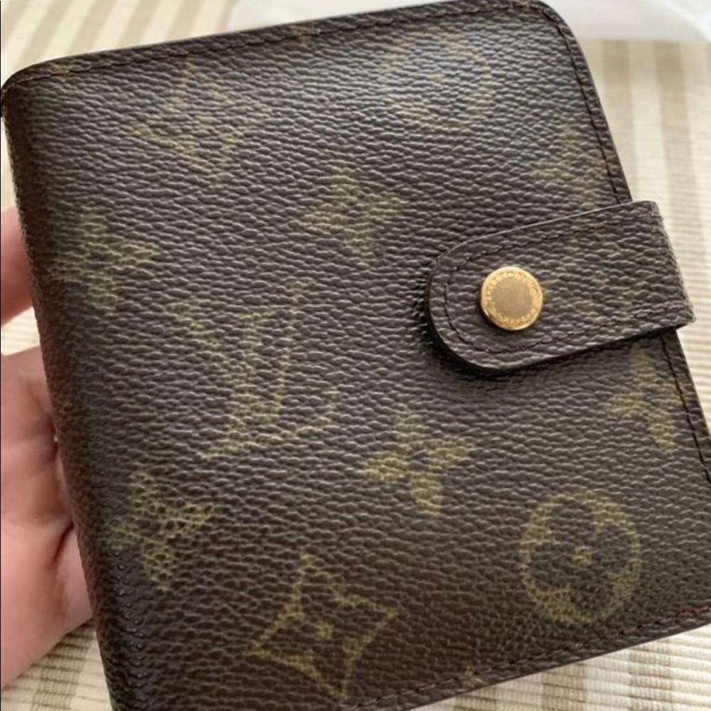 Authentic vintage wallet signs of wear compartment interior peeling see more of the picture before purchase it but other than that still work fine no dust bag or box final price