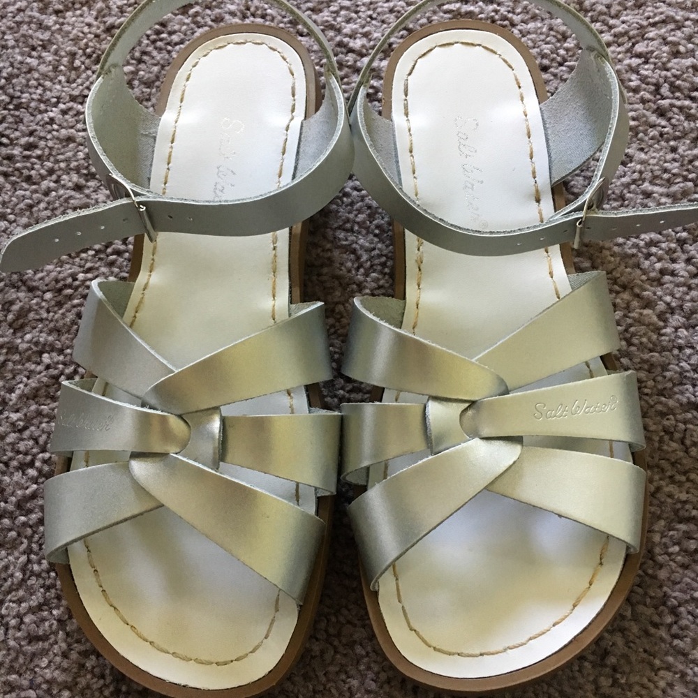 Very good used condition sandals. Wore these a few times but I just don’t reach for them as often. Size is youth 7 which is equivalent to women’s 9. I have them in a couple other colors and they are so comfy and last forever!