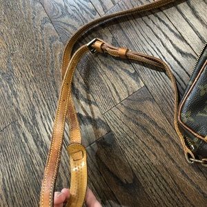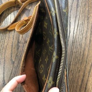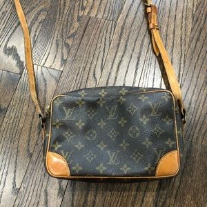 Trocadero 23, cross body strap is fully intact and functional with 6 adjustable settings, canvas is in good condition, with water marks on front leather, has the front pocket and inside zipable pocket, clean inside besides minor pen ink stain(see photo)