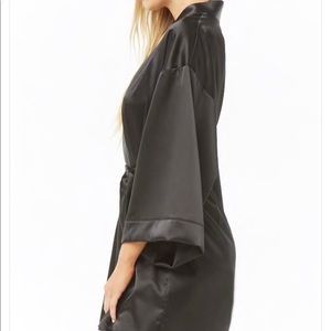Womens satin robe featuring a shawl collar, long kimono sleeves, dropped shoulders, and removable sash in size SM/MED. Could even fit a Large. No signs of wear. This is perfect for those times you’re doing your hair and makeup!